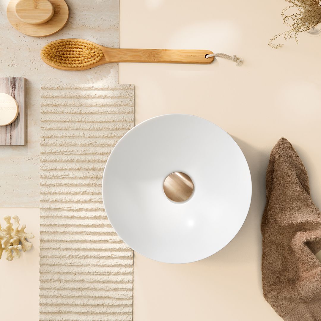 Nichts zu tun ist endlich eine Kunstform. „UNWORK“ ist der Name eines Moodboards von Francq Colors, das dazu einlädt, langsamer zu werden und sich für ein Leben mit weniger Arbeit, weniger Stress und weniger Verantwortung zu entscheiden.Farben wie „Comfortable Caramel“ und „Boring Beige“ schaffen eine sanfte, erdende Ästhetik. Voluminöse Formen, locker drapierte Stoffe und hyper-taktile Oberflächen laden zu Langsamkeit, Komfort und Stille ein. Mit Waschtischen von AXOR Suite.